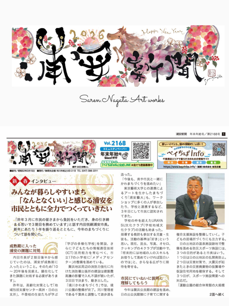 今年も、浦安新聞 2026年元旦号の題字を書かせていただきました。(13年目)